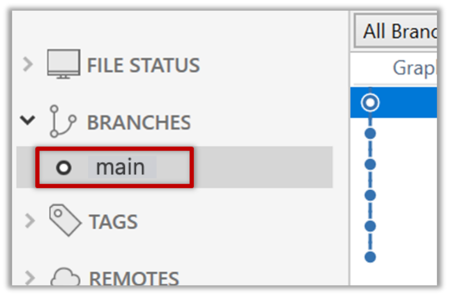 In the screenshot above, you see a main ref and a origin/main ref for the same commit. The former identifies the of the local main branch while the latter identifies the tip of the main branch at the remote repo named origin. The fact that both refs point to the same commit means the local main branch and its remote counterpart are with each other.