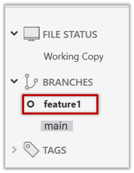 4 Switch to the main branch. Note how the changes you made in the feature1 branch are no longer in the working directory.