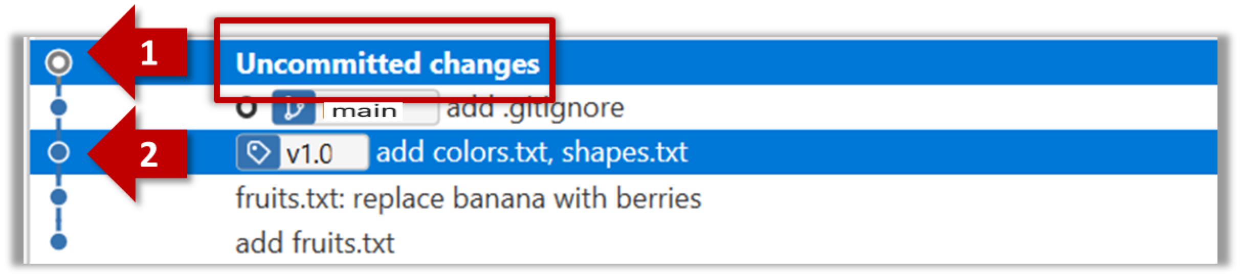 The same method can be used to compare the current state of the working directory (which might have uncommitted changes) to a point in the history.