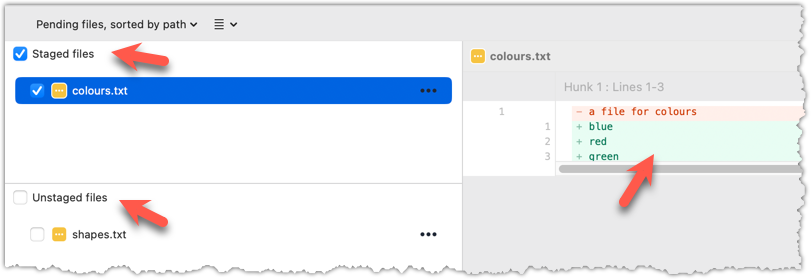 git diff --staged -- list.txt # staged changes to list.txt