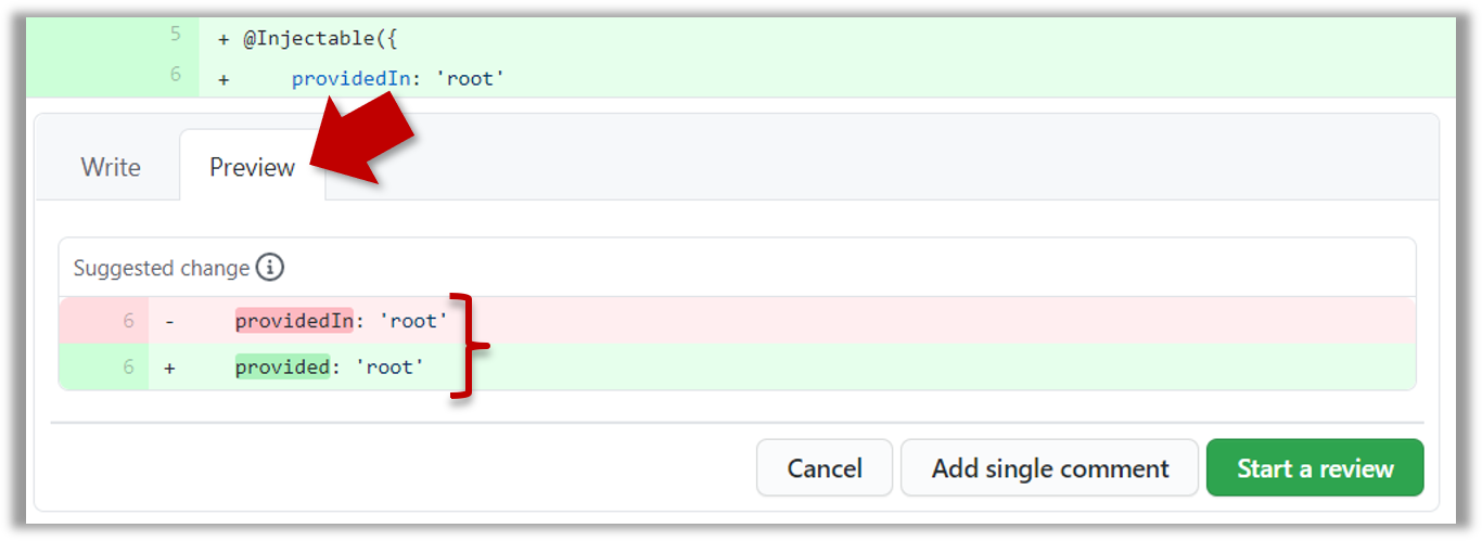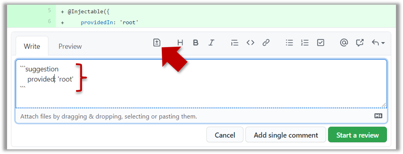 • To suggest an in-line code change, click on this icon: