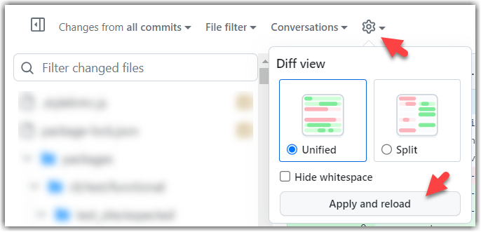 3Click on the Files changed tab to see the diff view.