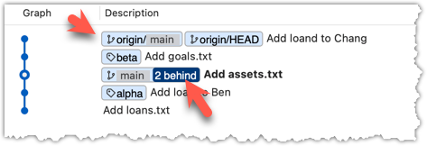 Now, the revision graph should look something like the below. Note how the origin/main ref is now two commits ahead of the main ref.