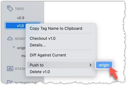 Target Push tags you created earlier to the remote.